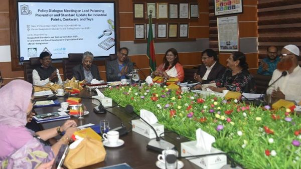 জনস্বাস্থ্য ও পরিবেশ রক্ষায় শিল্পে ব্যবহৃত রং, অ্যালুমিনিয়ামের বাসনপত্র এবং শিশুদের খেলনায় সিসার উপস্থিতি নিয়ন্ত্রণে হালনাগাদ বাংলাদেশ মান (বিডিএস) বাস্তবায়নে এবং কঠোর আইন প্রয়োগের আহ্বান জানিয়েছেন বিশেষজ্ঞরা। মঙ্গলবার (২৫ নভেম্বর)